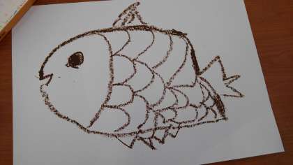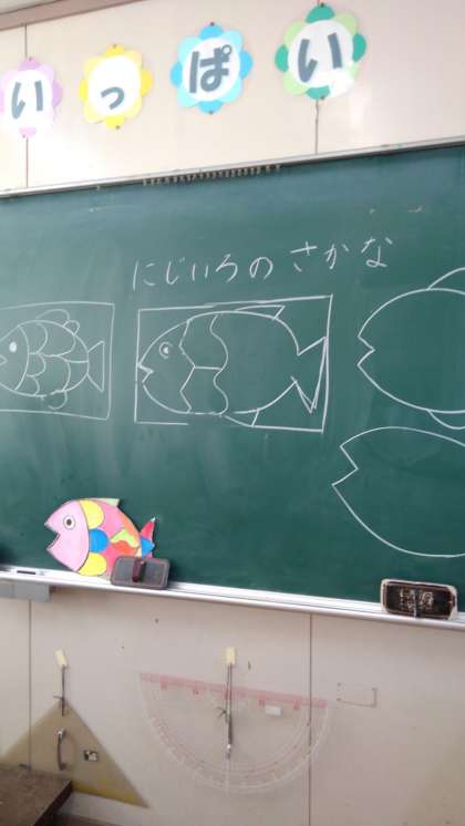 にじいろのさかなを描いています。出来上がりが楽しみです。