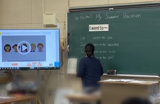 外国語の活動では、「行った、食べた」などの過去の活動を英語で聞いて、表現しました。