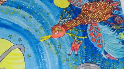 素敵な鳥が宇宙をとんでいます。