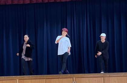 プロのダンサーのダンスをみて、みんなで踊りました。