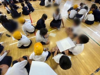 反対から言った言葉を縦割り班のメンバーで考えて、答えを出していました。