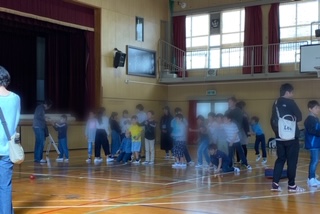 ボッチャの方法を教えてもらってから、ボールを投げて試合前の練習をしました。