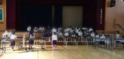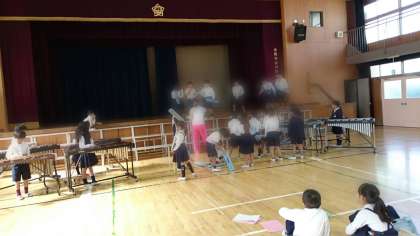 今日は、ジョイントコンサートに向けて、はじめて講堂で練習をしました。