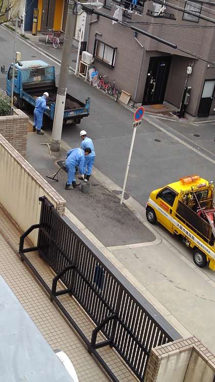 学校の北側の木を切った場所がコンクリートで埋められました。