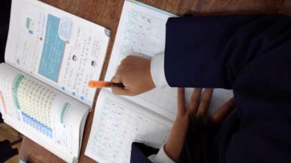 8かける7の答えと7かける8の答えは同じという学習をしています。