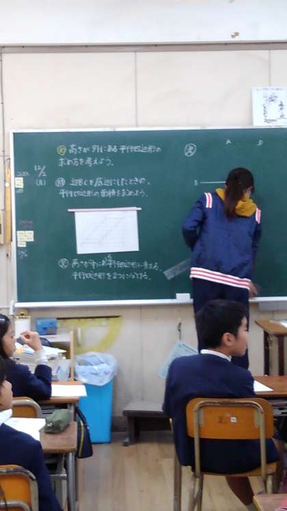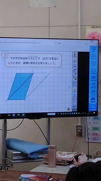 高さが外にある平行四辺形の面積のもとめかたを考えています。