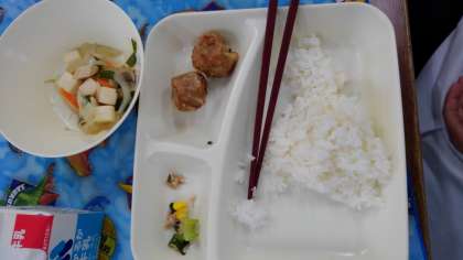 あげシューマイ、とうふのスープ、ツナとチンゲンサイのいためものです。