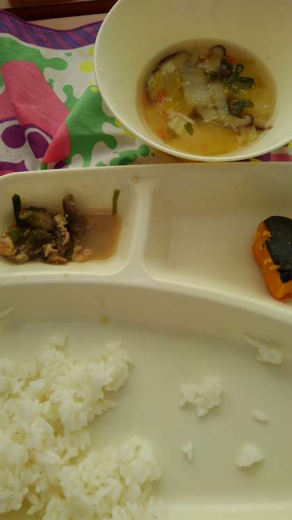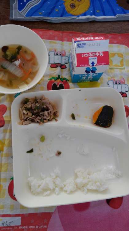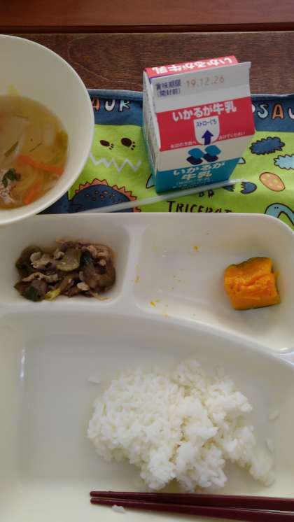 豚肉と干しずいきの味噌煮、すまし汁、焼きかぼちゃです。