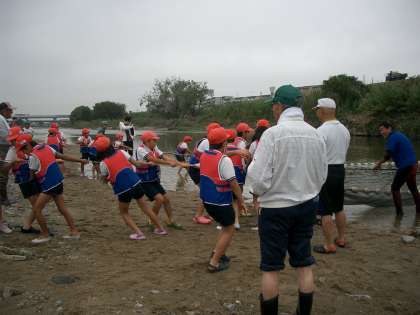 クラス毎に分かれて地引網をしました。