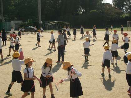 1時間目終了後の休み時間は運動場に出て