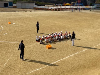 オリックスの元選手の方々に来ていただいて、Tボールの学習をしました。