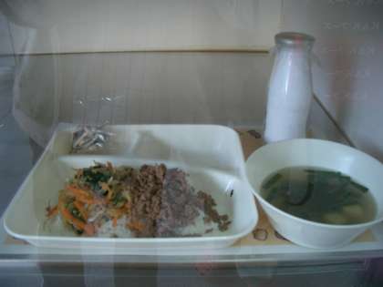 ・ビビンバ わかめスープ アーモンドフィシュ 牛乳