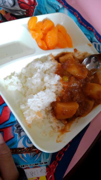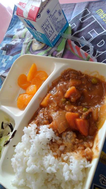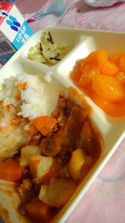 ハヤシライス、キャベツのひじきドレッシング、みかん缶詰です。