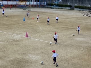 ボールを蹴ったり、足で止めたり、ターンをしたりしました。