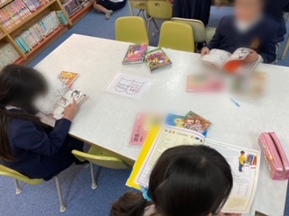 ひらちゃんノートに、読者の記録を書いて、学校図書館で本を読みました。
