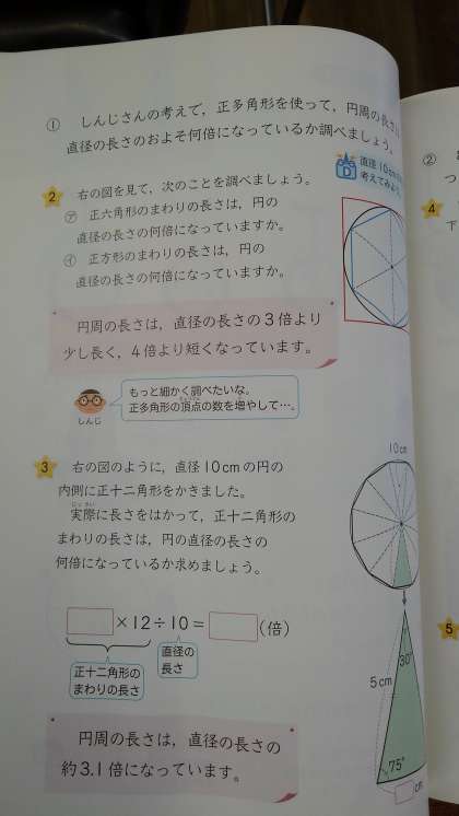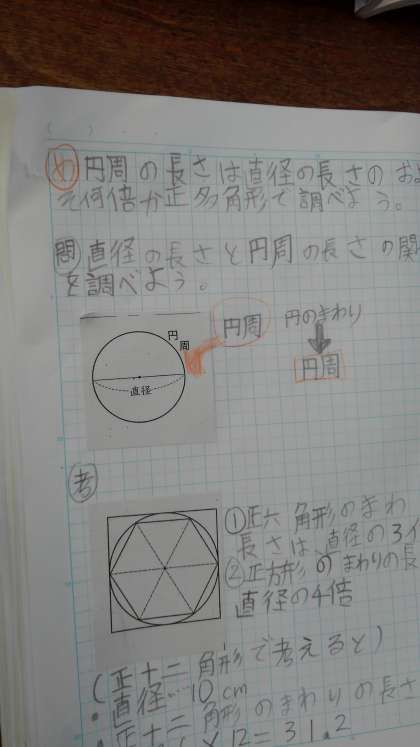 多角形の円周と直径の関係を調べています。