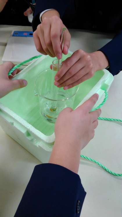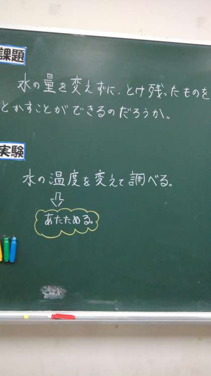 溶けないみょうはんを、どのようにすると溶けるかという実験をしました。