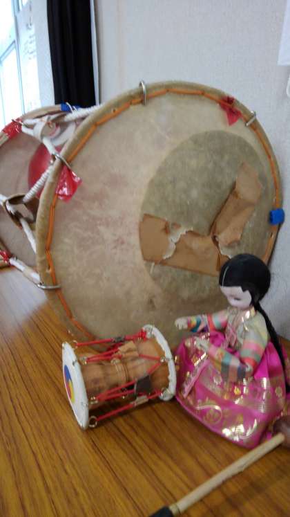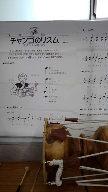 多目的室に楽器や文字についての掲示があります。