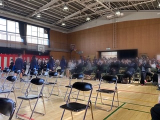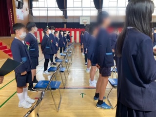 式が終わり、講堂をみんなに見守られながら退場しました。