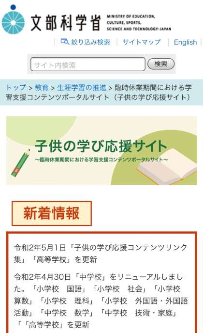 以下のリンクから、文部科学省の子供の学び応援サイトへ入ることができます。