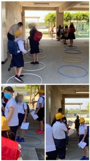 登校してすぐに、並んで健康観察(健康観察表で対応等の確認)を行いました。
