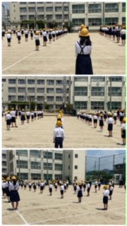 運動場で、新しく来られた教職員の紹介をしました。
