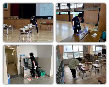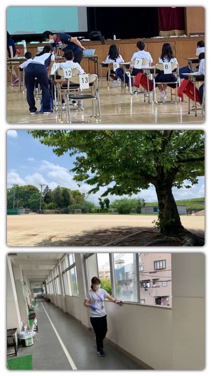 前半は奇数グループの皆さんでした。後半開始までに先生たちで教室・廊下・トイレのアルコール消毒をしました。