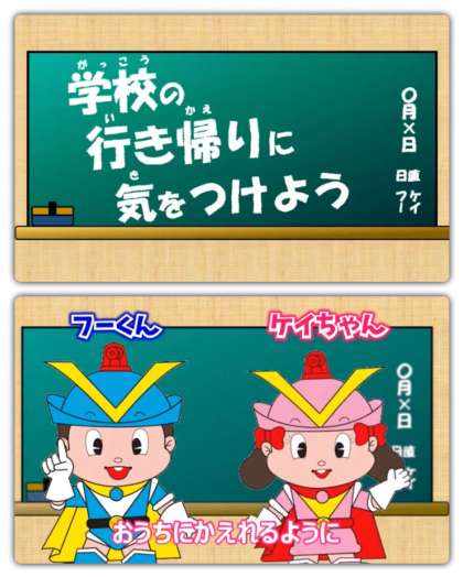 大阪府警察では、新1年生など登校に不慣れなお子さんや、久しぶりに学校に行くお子さんに対し、