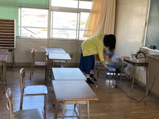 1日で、使った全ての教室の細かなたところまで、しっかりと消毒を毎日行っています。