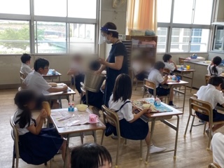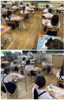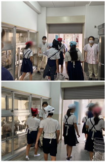 6年生は、きちんとエプロンをつけて、スマートに用意をしています。