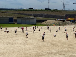 運動場で体育科をしました。 縄跳びや、かけ足で走ったりして、体づくりを行いました。