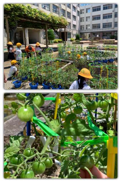 2年生の心をこめて栽培しているミニトマトに!実がつき出してきましたよ。こちらもハッピー!ハッピー!です。