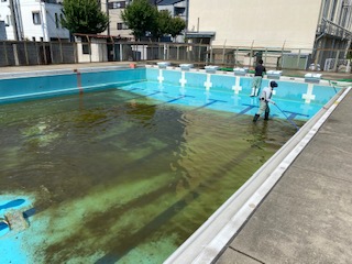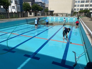 今年度は、水泳の授業実施はしませんが、来年度に向けて、プールの機械を動かして使えるようにするため、清掃を行いました。