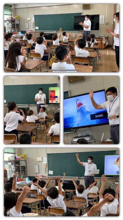 2年2組は、5限目にクリス先生による外国語(英語)の授業でした。How are you?と聞かれたら、自分の体や気持ちの状態を表す英語で、身体表現(ジェスチャー)も入れながら楽しく活動していましたよ。簡単なあいさつやコミュニケーションの練習をしています。音楽が流れると自然にリズムに乗って表現ができますね。Very Good!!