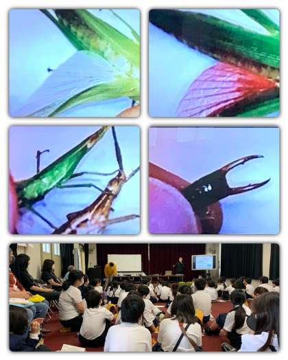 昆虫や植物を顕微鏡で観察し、説明を聞くことで、今まで知らなかったことがたくさんわかりました。最近では外来種もたくさん入ってきていますが、川辺小学校のショウリョウバッタは日本種と外来種の両方がいて、羽の色で比較しました。とても貴重な体験をしています。