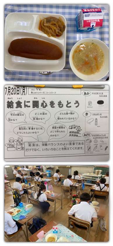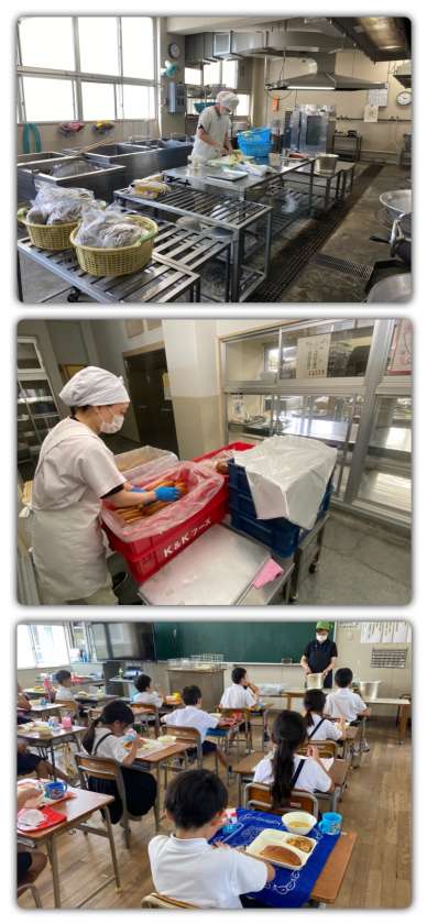 暑い1日ですが、給食調理員さんは、愛情たっぷりの調理をしてくださいました。