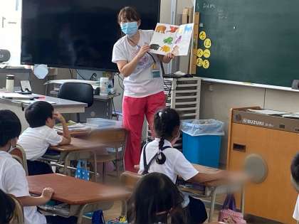 今日の給食のあとの時間は、Englishタイムを行いました。