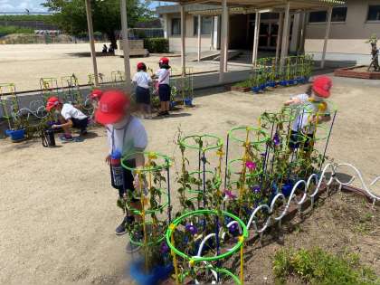 元気になあれと声をかけ、花の色を楽しみながら、水やりをしていました。