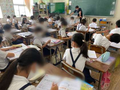 算数科で「あまりのあるわり算」の学習のまとめをしています。