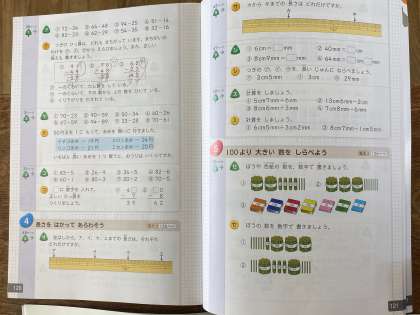 ひっ算でくりさがりのある引き算の学習のまとめをしています。