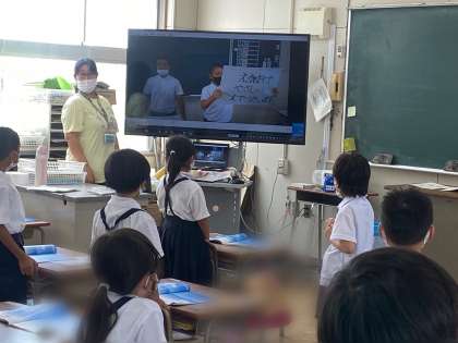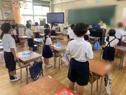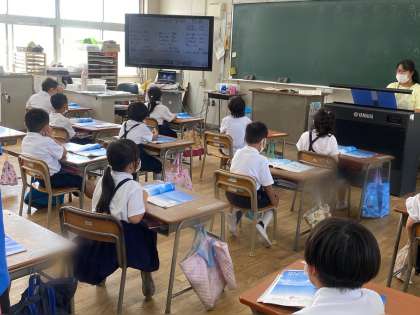 6年生にビデオを通じて教えてもらった校歌を歌いました。