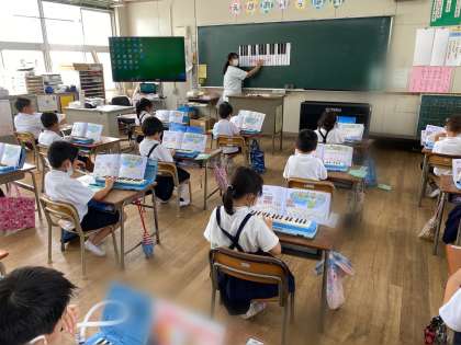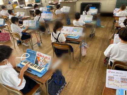 ドの音の位置を確認して、「カエルの歌」などの曲をリズムを感じながら、演奏しました。