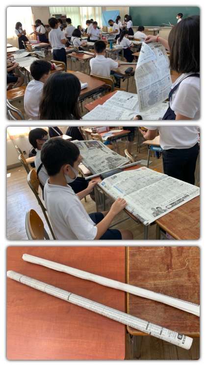 6年生は、9月2日からの修学旅行が終了したら、運動会の団体演技に向けての練習が始まります。フラッグも使っての練習があるので、練習用に新聞紙でポールづくりをしました。いよいよ一人一人の力を結集する日が近づいてきます。運動会は9月27日(日)です。