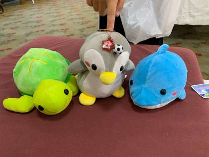 ぬいぐるみの他は、えびせん、みそ汁、伊勢海老チップ、勾玉ストラップ、ドラゴンの置物などなど。