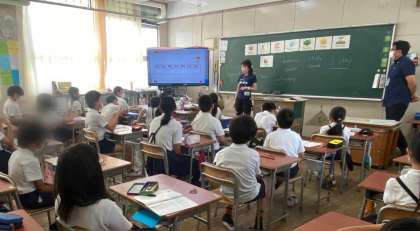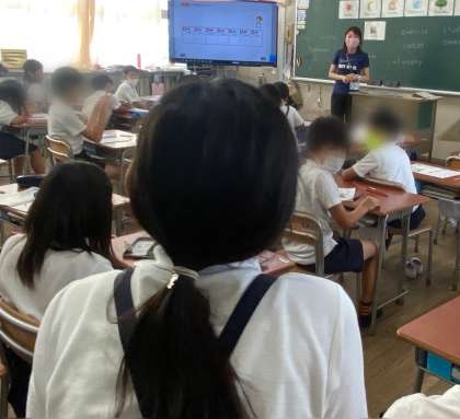 今日の4年生は、C-NETの先生と一緒に外国語活動の学習をしました。