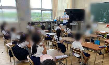 大阪市が設置している、防災行政無線スピーカー(学校の屋上に設置されています)から出る放送を聞きながら、地震発生時の避難訓練を行いました。