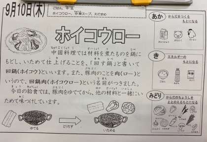今日の人気メニューは、ホイコウロー。ご飯と一緒にとても美味しくいただきました。