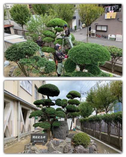 先週金曜日より、校園営繕園芸事務所の方々に来ていただき、校内の庭木の剪定をしていただきました。美しく形が整形されています。ありがとうございました。