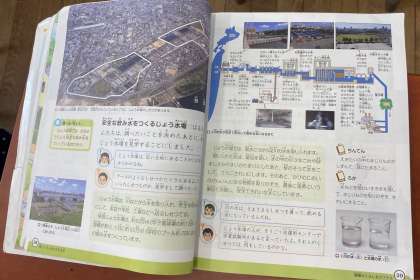 社会科で、浄水場で作られる安全な飲み水について、考えました。