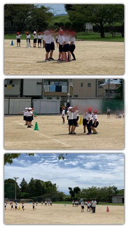 体育で、表現遊びをしています。魔法で変身していきます。体をいっぱい動かしています。